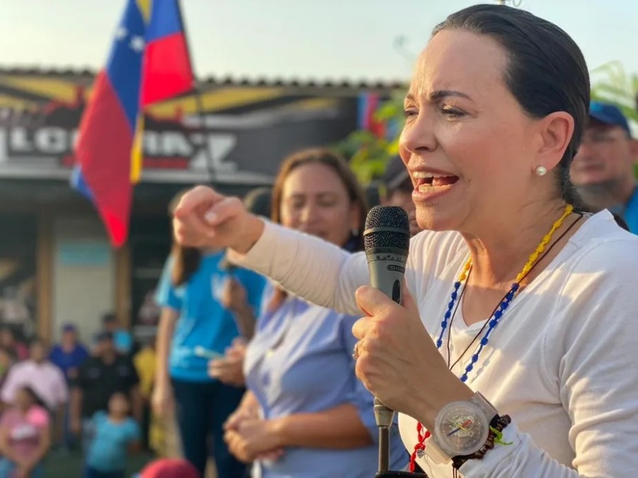 "O que estamos pedindo é que essas estruturas que saquearam o país e que deixam esse rastro de morte e dor sejam desarticuladas, e Maduro tem neste momento a possibilidade de avançar em uma transição pacífica. Com negociação, sem negociação, ele vai deixar o poder", afirmou María Corina.